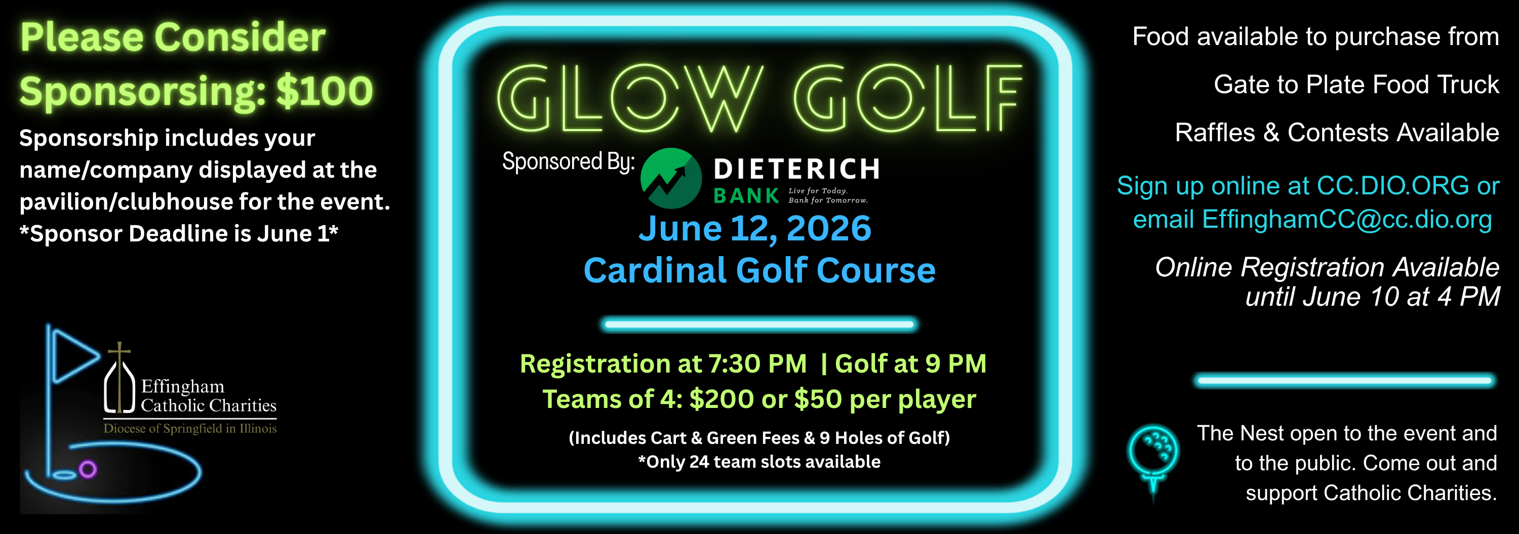 I am unable to attend the Effingham Catholic Charities Glow Golf fundraiser event, but I would like to make a donation.